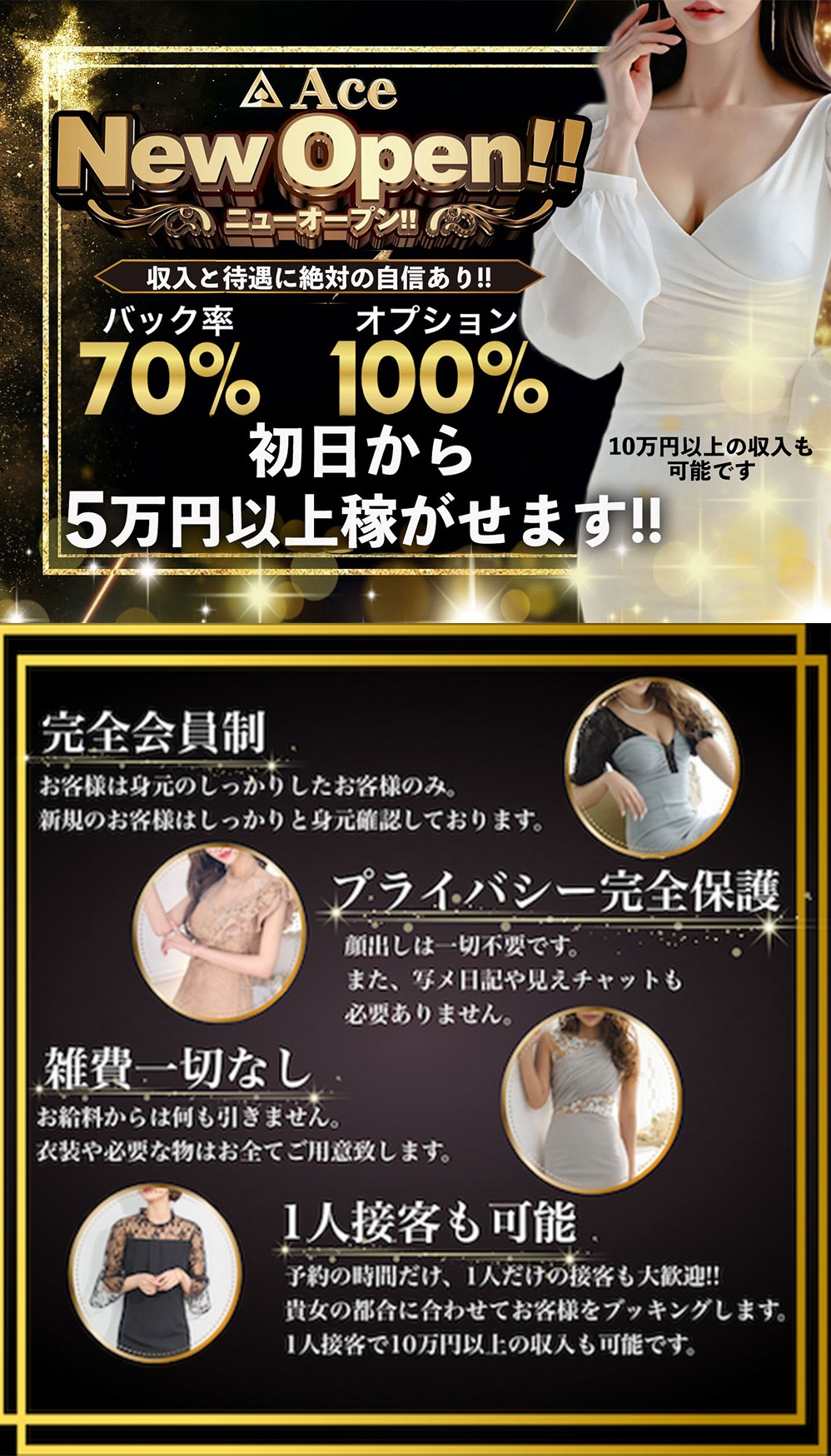 副業やWワークを歓迎しているお店だよ。時間が許す限りガンガン働いていお金を稼ぎたい女の子にはありがたいよね。シフトの入れ方にはお店ごとに決まりがあるから、詳しい条件は問い合わせてみよう♪