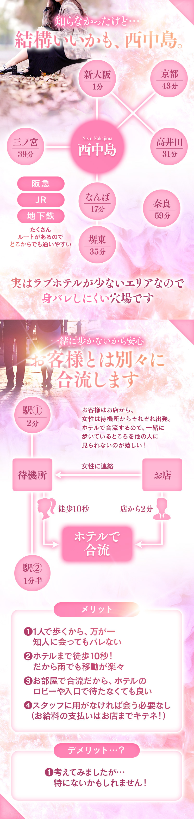 ご覧頂きありがとうございます!人妻百花店長 T氏です。まずは【店長への質問】Q.女の子の入店理由は何が1番多いですか?A.意外に多いのが近いから・・・です。灯台下暗しというべきか、西中島に風俗が少ないからなのか・・・近くで働けるなら最高ですよね。立地で選ばれる方が多いです。しかも駅近です。改札を出て2分です。次に全員個室待機ができる。コロナ前は出勤人数が1日朝夜で20~30人だったので個室が24部屋くらいあります。個室って意外と実は数部屋しかなくてってのを聞いたことあります。今は10人前後から20人くらいの出勤ですので当然個室待機ができます。これも意外と多いです。あ、話の最中でよく話題になるのが「ホテルまでお客様と別々(モニター確認はできます)に行く」「部屋合流でロスなし」というのも多いです。あとはけっこう忙しそう・・・です。これもそうだと思います。