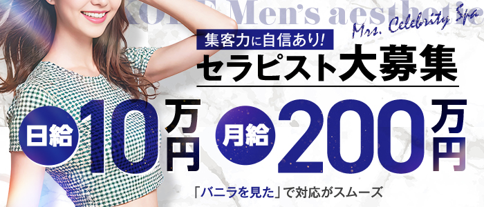 給与 日給50,000円以上 60分:13,000円~ 90分:18,500円~ 120分:24,000円~ 給料は頑張り次第でどこまでも上昇!