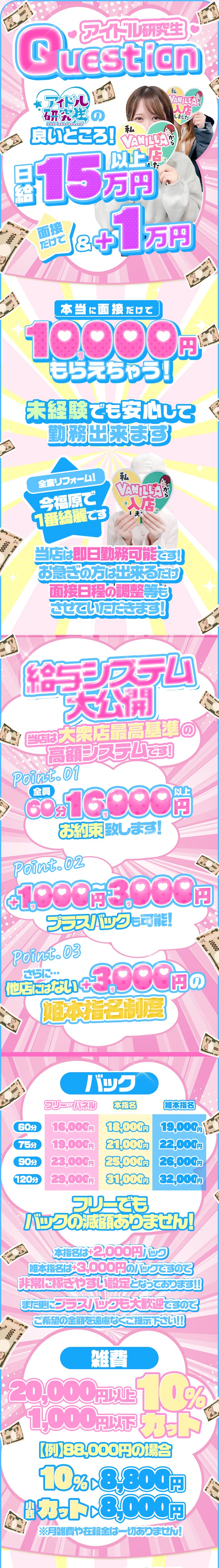 コースが分かれていますがバック率がかなりいいので土日だと10万越えの日もあるから清算が楽しみになります♡ 特殊サービスもオプションなので頑張れます!