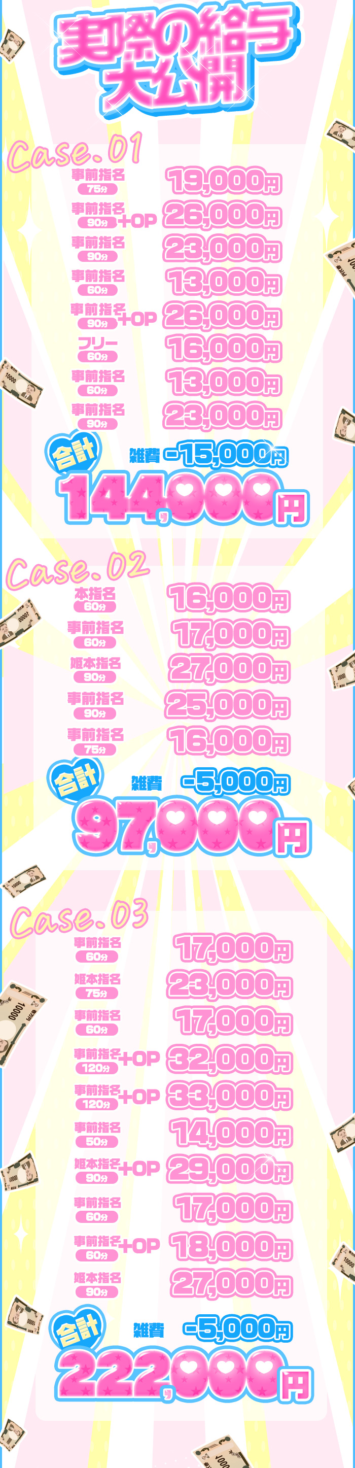 本日の募集人数 5人 体入給与 日給150,000円 給与保証 あり - 給与例