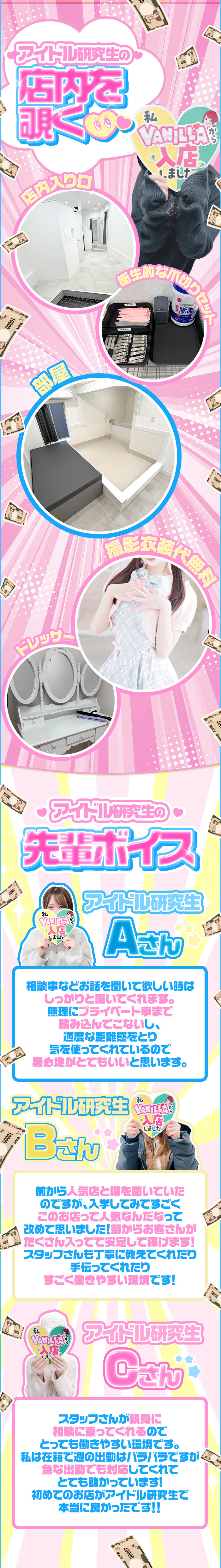 ★★★店舗のスタッフはどんな人?★★★ 当店は『まず誰を採用するのか』を非常に大切にしており、素直で真面目なスタッフだけを採用しています!仕事に対する明確なルールもあり、主に時間や身だしなみなど心構え一つでできる内容で『姿勢のルール』と呼んでおります!全員がそのルールに従って勤務しているので、時間などにルーズなスタッフ、だらだら仕事をするスタッフ、清潔感のないスタッフ、イライラしているスタッフ、『当店には一人もおりません』のでご安心下さい!キャストさんが『安心してしっかり稼げる環境』を作っております! ★★★お店の集客はどうですか?★★★ 当店は吉原の中心に店舗を構えていますが、それだけに甘えず『他店平均の約3倍の広告費用』をかけて徹底的にウェブによる集客を『研究』しております!その成果もあり『平日でも昼間でも雨の日でも』安定した集客が見込めます、また当店は新人さんのセールス力に自信があります!急な体験入店でも『満枠完売』しっかり稼げます!!いつでも当店にお越しください!!