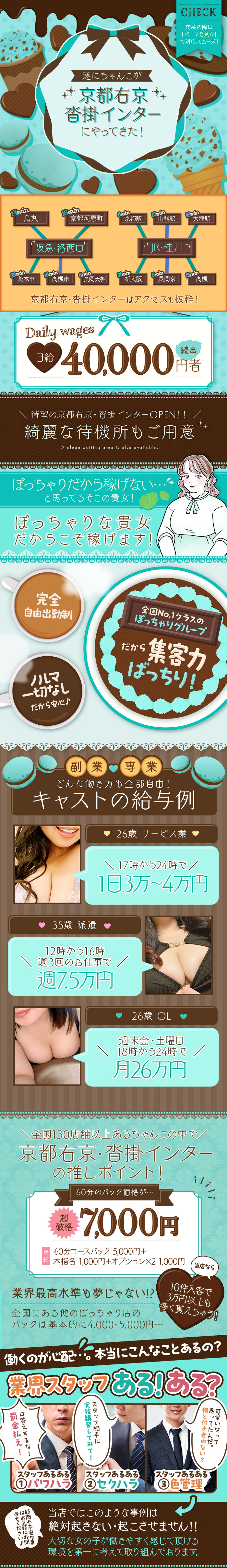 身バレを防ぐにはピッタリの立地!女性スタッフさんも頼れる!ぽっちゃり系の女の子が活躍する同店は、京都の中心部から離れた立地が特徴。「身バレをしにくいおかげで、遠方から通う子もいます」と店長の“エドモンド桜木”さんが教えてくれました。また、オフィスには女性スタッフさんが常駐。髪型やメイクなど、男性には伝えにくい相談もできるので、サポートはバッチリなのだとか。