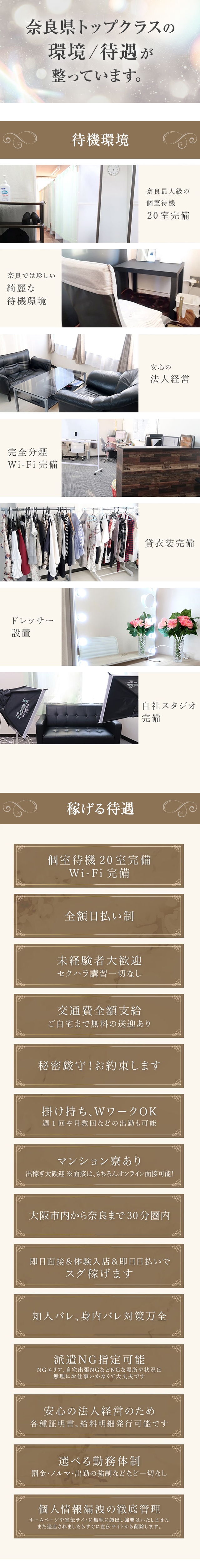 ■恋のうた☆働きやすさの秘訣■ 奈良でトップクラスの認知度があり 顧客数や、会員数もトップクラス! 奈良で安心安全に遊べるお店として お客様からご好評頂いております♪ だからこそ初めてで不安なの方や 他店様で稼げなかった方でも 当店では初日からしっかり稼げますし 閑散期にも強いお店でございます♪ ☆19才~39才までの女性大募集中☆ お人柄や内面重視の採用基準なので ルックスや体型に自信の無い方でも 当店に来て頂ければちゃんと稼げます ■恋のうたの待遇一覧■ ◎容姿・体型不問で採用率99% ◎即日面接・即日体験大歓迎 ◎顔出し一切無しでしっかり稼げる ◎安心のお給料は全額日払い制 ◎皆さま全員に交通費全額支給 ◎お給料からの雑費引き一切無し ◎割引イベントの姫負担一切無し ◎お給料の最低保証制度ありで安心 ◎清潔感のある個室待機室20室 ◎パネル撮影&自撮りルーム ◎出勤日も時間も自由に決めれる ◎終電後はご自宅まで無料送迎あり ◎マンション寮完備で出稼ぎ大歓迎 ◎法人経営なのでアリバイ対策万全 ◎Wワーク、他店との掛け持ちOK 是非皆さまのご応募お待ちしてます♪