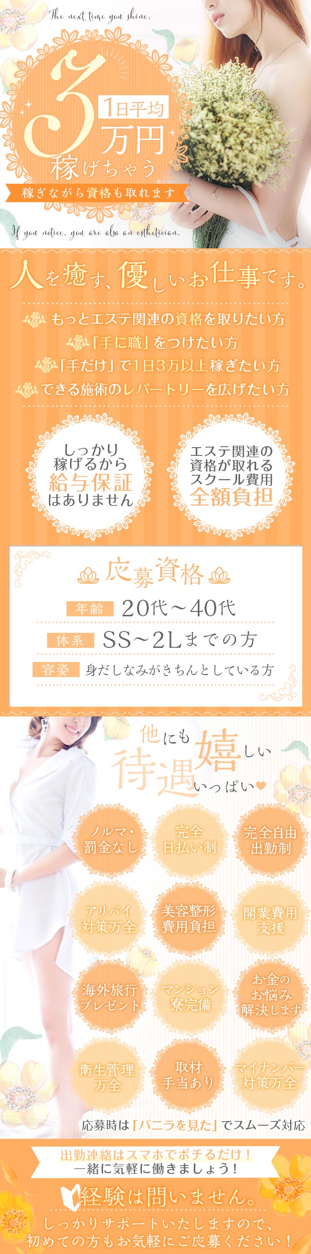 手に職を持ちたい気持ちと稼がなくてはいけない現実を両方とも手に入れることができるお店です!今はマッサージの資格も取り、昼の仕事とこっちの仕事両方で頑張ることができてます!