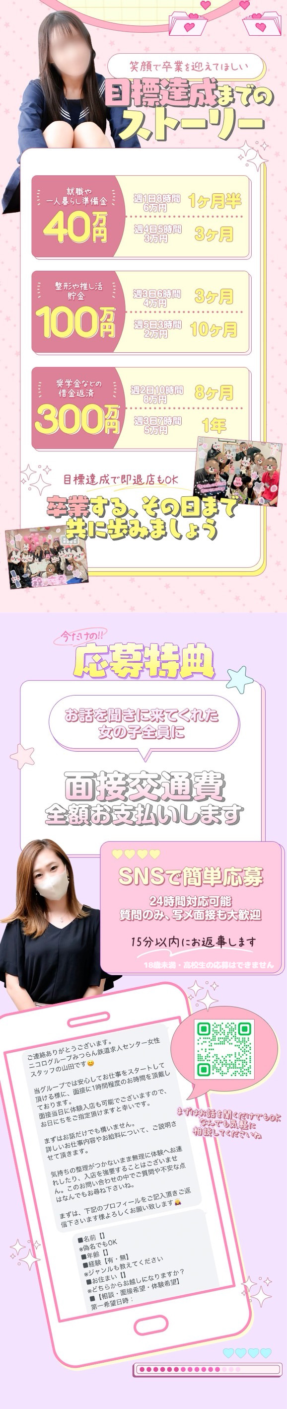 ※18歳未満・高校生の応募はできません🔰10代限定✨🌸入学祝い🌸✨デパコス💄プレゼント面接時に欲しいデパコス教えてください♩ーーーーーーーーーーーーーーーーーーーーーーーNICOROGROUP当店は系列店全て店舗型なのでスタッフさんがそばにいますし私たち女性スタッフが同じように対応しています♩・・系列店との同時面接も大歓迎・・◆私がどこに当てはまるのかわからない◆これくらいの経験はどこの店舗?と思う女の子はまずはみつらん鉄道にお問合せください♪あなたに合うお店を一緒に決めましょう♥
