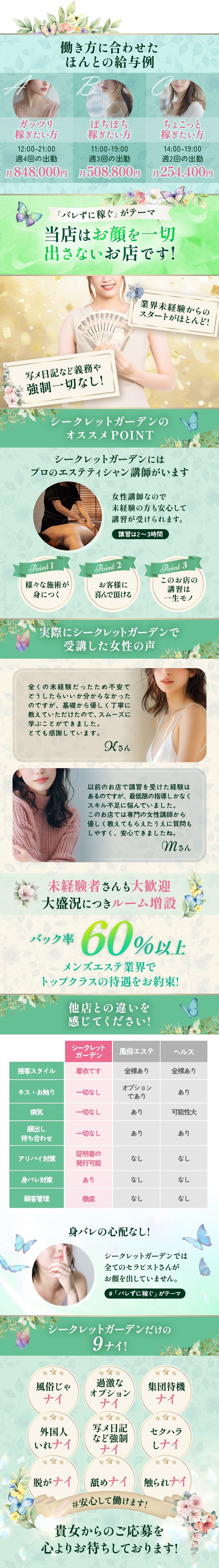 「メンズエステ、興味はあるけど…やったことないし、不安だなぁ」そんな風に感じている方、きっと多いと思います。でもね、大丈夫なんです。うちは“未経験大歓迎”のお店です。実際、先月入店した未経験の女の子が初月で70万円稼いでくれました!しかも無理なく、しっかりサポートを受けながらです。未経験って、誰だって最初は分からないことだらけ。だからこそ、うちでは必要に応じて講習をしたり、接客の仕方や流れもしっかり教えます。分からないまま現場に出すなんてこと、絶対にありません。お仕事中も、スタッフがしっかりフォローします。「ここどうすればいい?」っていう小さなことでも、ちゃんと聞ける環境が整ってるから、安心して働けるんです。メンズエステって、“気遣い”や“雰囲気”がすごく大事。だから、経験よりも「お客様を癒してあげたいな」っていう気持ちの方がよっぽど大切なんです。そして、メンズエステは短時間でも高収入が目指せるお仕事。自分のペースで無理なくシフトを組めるし、「空いた時間でしっかり稼ぎたい」って方には本当にぴったり。「自分にできるか不安…」そんなあなたにこそ、うちを選んでほしい。一歩踏み出す勇気が、あなたの未来を変えるかもしれません。お気軽にお問い合わせくださいね。あなたからのご連絡、お待ちしてます!